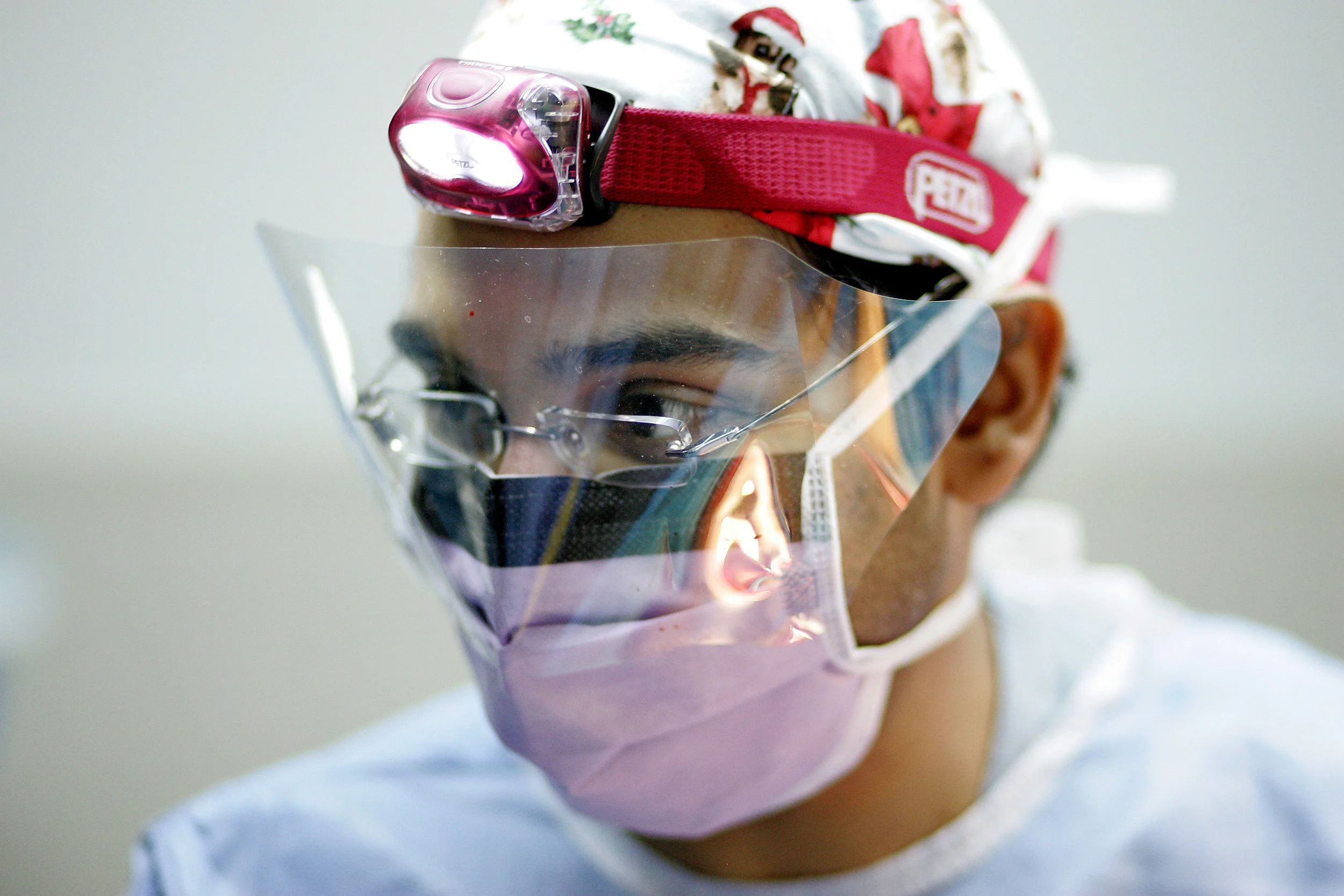 The orthopedist, a wiry figure in a surgical cap and headlamp, tapped his laptop to play music. The first song was "Wheels" by the Foo Fighters. The mood seemed to lighten as the operation commenced.